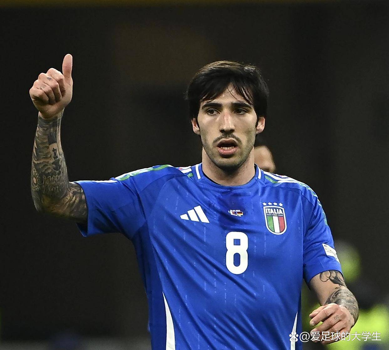但其他媒体的调子就更高了,《晚邮报》直接给了7分,还特意拿他和搭档巴雷拉比较,认为托纳利“在触球和活力上都更胜一筹”,并且还考验了对方门将。要知道,巴雷拉可是国米的核心,在国家队地位稳固。这种直接对比,意味深长。《体育传媒》的6.5分也附带了类似的评语,说他用惯常的冲击力“撕裂”了爱沙尼亚的防守。
